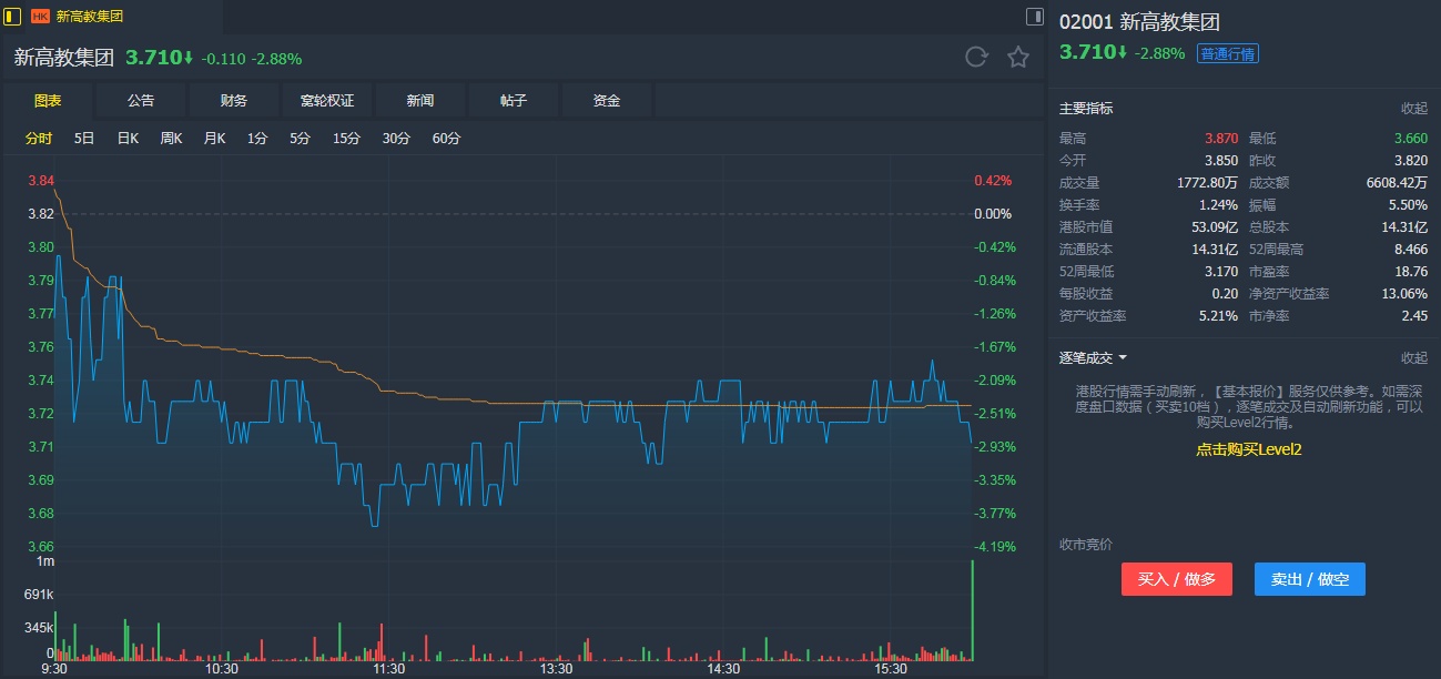 智通财经APP获悉,瑞银发表研究报告指出,虽然新高教(02001)以折让价配股,并造成约7%的摊薄影响,但股价仅微跌,认为市场对消息反应正面,而配股将可确保公司短期流动性,并消除投资者的疑虑,予“买入”评级,目标价为5港元。