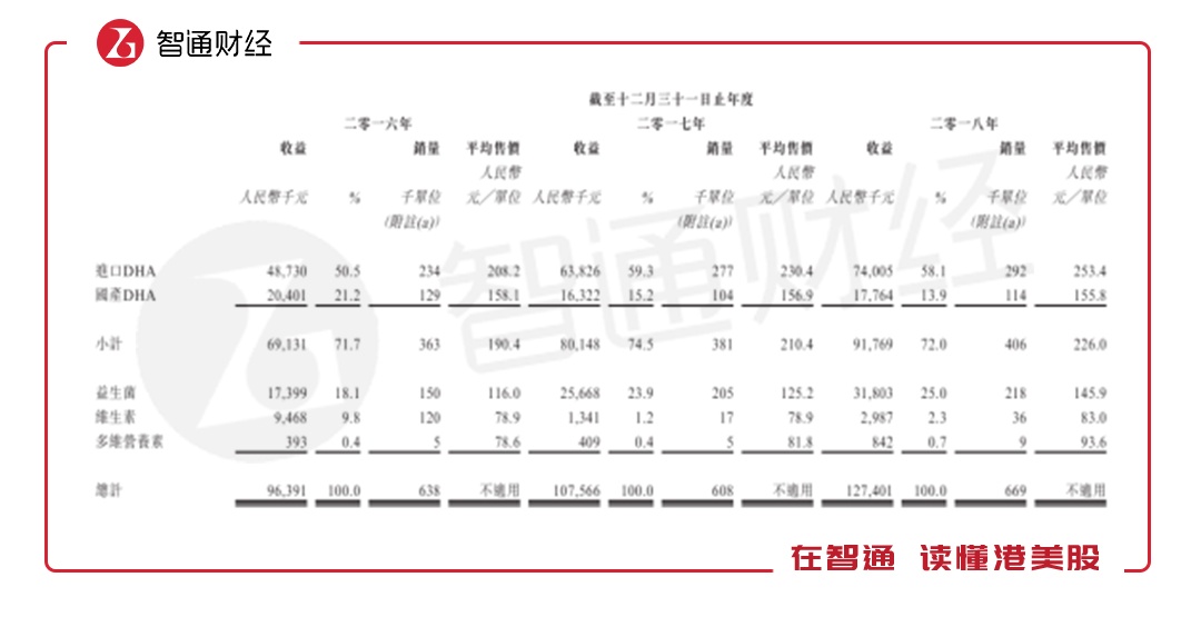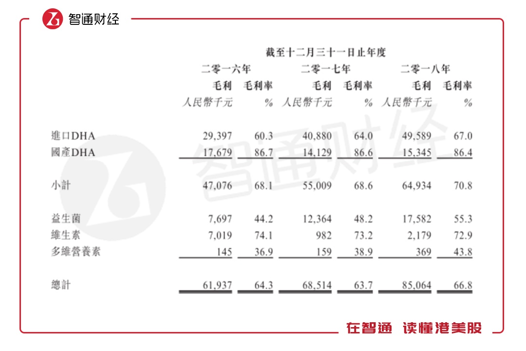 智通财经APP了解到,截至目前,公司产品类别可主要分为四类:DHA、益生菌、维生素及多维营养素,主要目标受众为怀孕及产后妇女、婴儿及儿童。其中,DHA产品则为最主要代表,于2016-2018近三年中,DHA相关产品收入占同期总收入比重均超过70%。于2018年本地品牌中(按由进口DHA(藻油)原材料制成的DHA(藻油)产品零售销售价值计)占约市场份额16.4%。