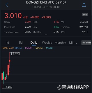 截至今日收盘,东正金融(02718)涨3.08%,报3.01港元。