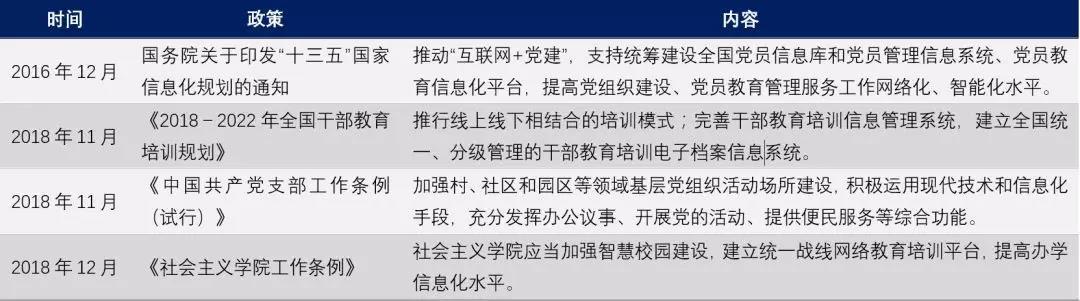 近年来,我国党建工作不断加强,基层党建工作持续推进。2018年来,政府发布多个文件,要求加强基层党建工作,推进“智慧建党”、党建信息化建设,拉动了对视频会议业务的需求。智慧网络党建作为网络信息技术和党建工作相结合和重要平台,相对传统党建而言,是一种新超越。