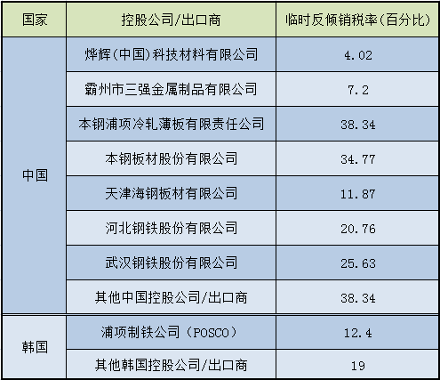 越南竞争管理局的官方网站公布,越南工贸部决定对中国和韩国进口的镀锌钢板产品征收临时反倾销税,对中国企业的反倾销税率在4.02%至38.34%之间,对韩国企业则在12.4%到19%之间。