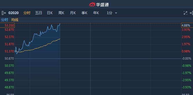 港股异动︱获大摩首予“增持”评级目标价60元 安踏体育(02020)涨近5%