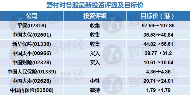 智通财经APP获悉,野村决定再上调内险股的目标价,认为增长稳定,但竞争上升,建议收集高毛利的内险股如平保(02318)、中国太保(02601)及新华保险(01336)。