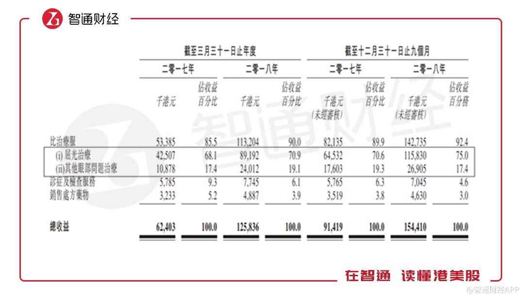 按照招股书透露,智通财经APP估算了其手术费用,收入占比最大的屈光治疗中,公司最引以为傲的全飞秒激光小切口透镜切除术平均费用为26000港元/人,而更换多焦距人工晶体的平均费用高达45000港元/人。