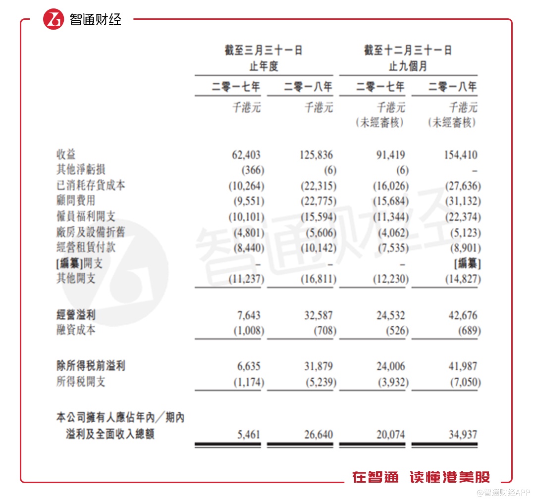 智通财经APP观察到,清晰医疗的收益及净利增速不低。截至2017年3月31日止年度、截至2018年3月31日止年度、截至2017年12月31日止9个月及截至2018年12月31日止9个月收益分别为6240.3万港元、1.26亿港元(同比增长101.6%)、9141.9万港元及1.54亿港元(同比增长68.9%)。净利分别为546.1万港元、2664万港元(同比增长383.6%)、2007.4万港元及3493.7万港元(同比增长73.6%)。