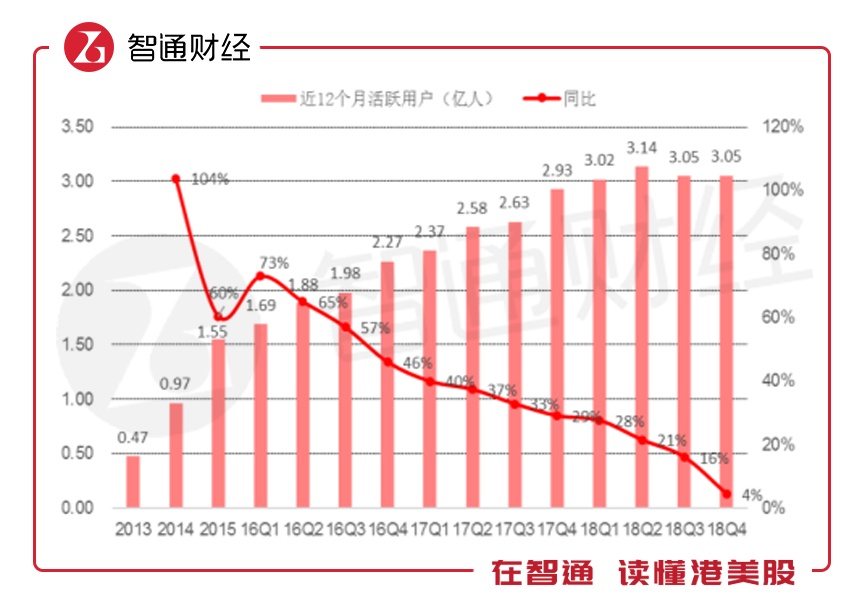 平台佣金及广告收入则是受到年活跃买家增长停滞的影响,2018年收入达335亿元,增速显著放缓至32%,目前支撑收入增速的主要是物流收入,该业务收入2018年同比增长143%至124亿元。