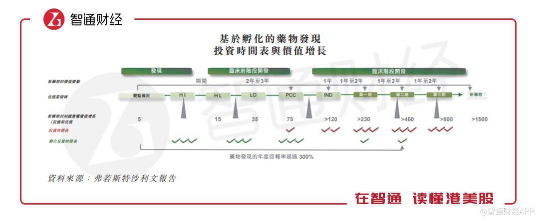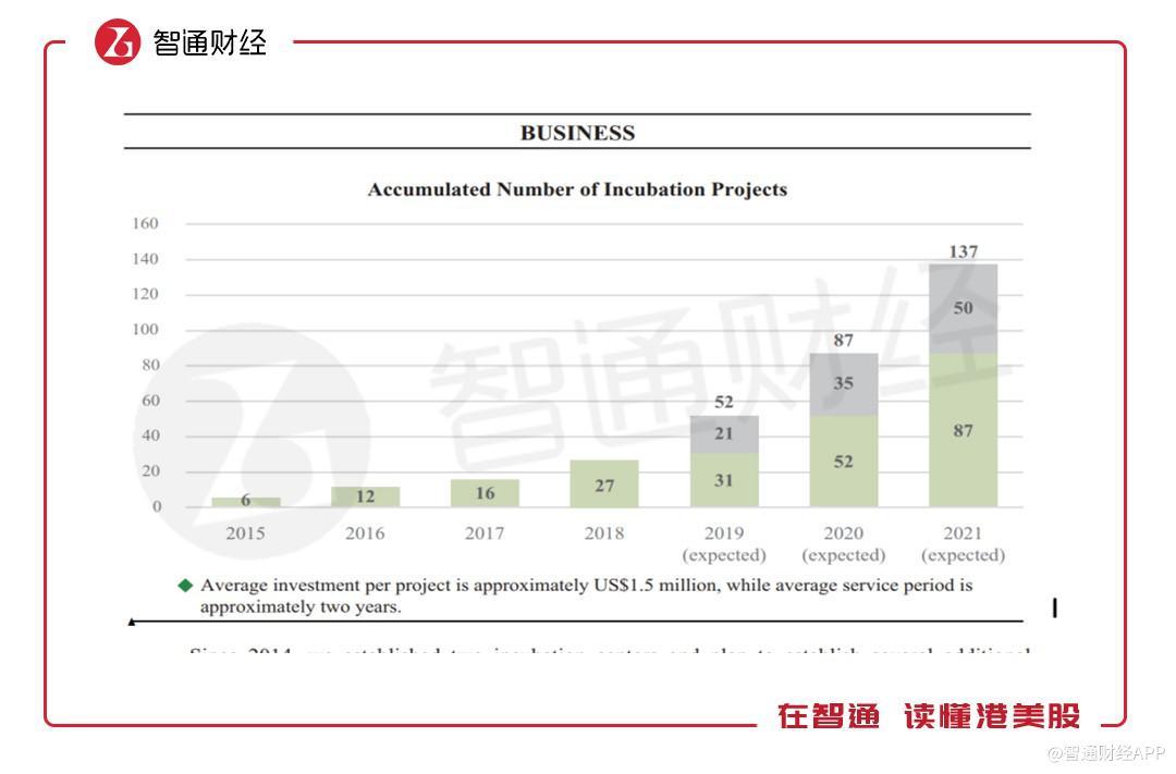 过去几年,维亚生物孵化的公司数目快速增长,从2015年的6个增加到了最新招股书日期的31个,平均可持有股权达到24%。所持有公司总数二年内可达百家以上。根据招股书,孵化的公司多数处于种子轮阶段,目前有11家被孵化投资的公司已经完成新一轮融资,已完全退出项目1个,部分退出项目3个,IRR均超过100%。据智通财经APP了解,维亚生物从这四个项目已经获得的回报足以覆盖过去四年孵化项目的投入成本。随着孵化业务的不断规模化,公司孵化企业的平均管线质量,价值预期及上市规划等也将有望直接对标纳斯达克、港股18A公司,而港股18A公司的市值中位数为百亿港币以上。如此推算,2年百家百亿的价值估计是维亚的真正的目标,不容忽视。