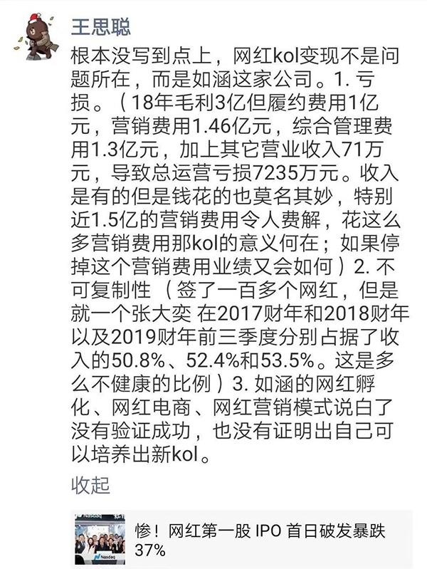 王思聪则直接质疑如涵:“花那么多营销费用KOL的意义何在?”