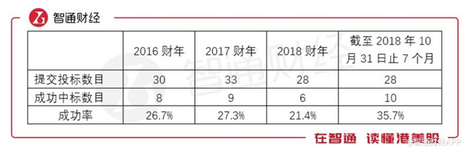 据招股书,2016~2018年财年及截至2018年10月31日止7个月,公司成功中标数目分别为8个、9个、6个及10个,这和营收的变动几乎同步。想象一下,如果公司无法提高中标数目,那么增长的可持续性将无从谈起