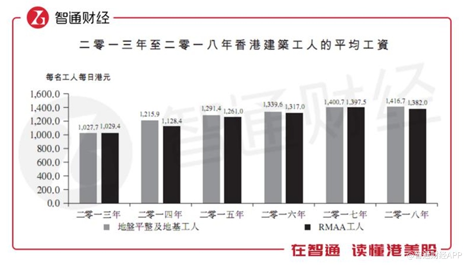 劳工成本方面,香港建筑工人短缺已经不是什么新鲜新闻,为挽留现有的熟练劳工并吸引更多的新进入者及年轻进入者,承建商往往向工人支付更高的薪金,推动工资不断上行。据Ipsos报告,于香港从事RMAA行业工人的平均日薪,由2013年1029.4港元增至2018年1382港元,年复合增长率6.1%;土木工程工人的平均日薪,由2013年1027.7港元增加至2018年的1416.7港元,年复合增长率6.6%。