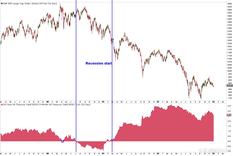 在2000年4月,同样是被认为是“错误信号”的收益率曲线随后再次倒挂,11个月后就出现了经济衰退。