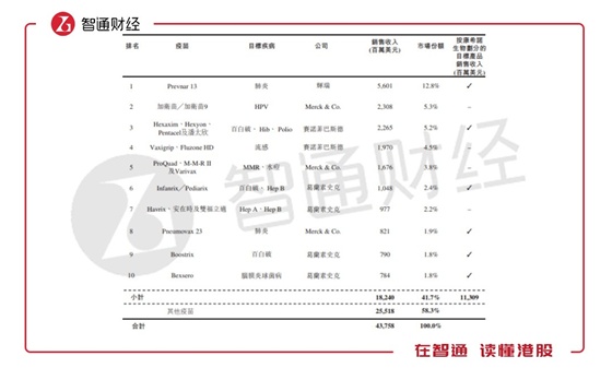 规模庞大,可全球疫苗集中度异常高,其中十大重磅疫苗产品市场份额占41.7%,分别由默沙东、葛兰素史克、辉瑞和赛诺菲四大跨国药企掌握,约占据全球中份额80%以上。比如市场份额最高的为辉瑞Prevnar肺炎疫苗,市场份额12.8%。