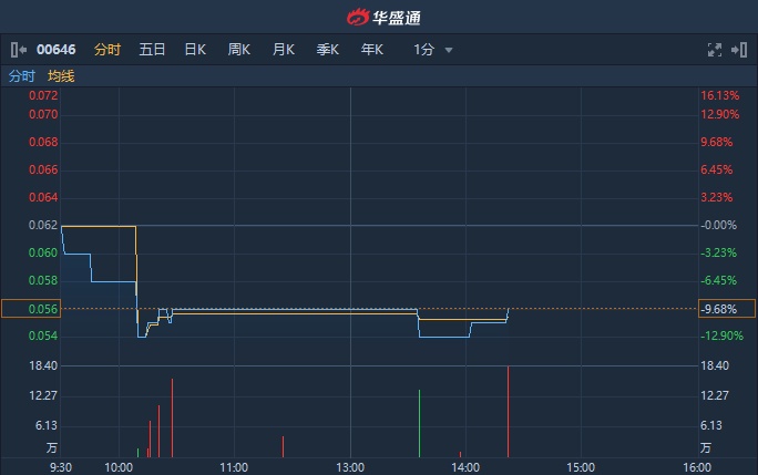 智通财经APP获悉,中国环保科技(00646)今日复牌,早盘跳水走低后维持横盘,截至14时21分,跌9.68%,报0.056港元,成交额达4.07万港元。