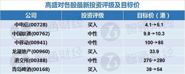 二、高盛对各股最新投资评级及目标价