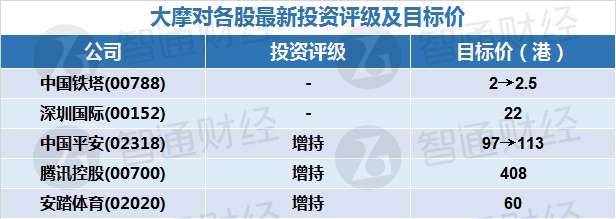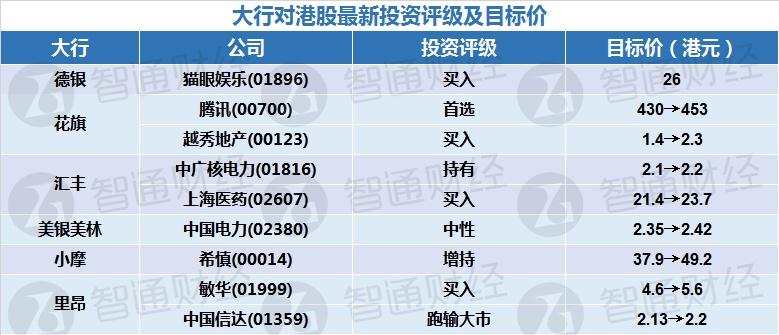 五、大行对港股最新投资评级及目标价
