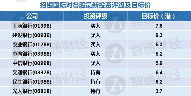 四、招银国际对各股最新投资评级及目标价