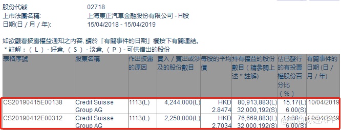 智通财经APP获悉,根据联交所资料显示,东正金融(02718)于4月9日及10日获瑞信集团合共增持649万股,每股作价依次为2.7034港元及2.8474港元,总值约1817万港元,最新持股数目8091万股,最新持股比例增至15.17%。