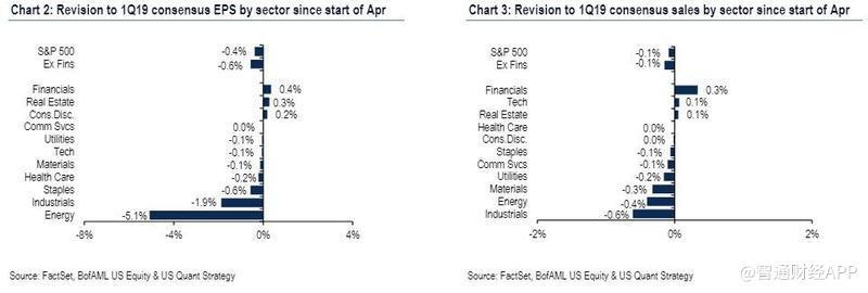 按行业分类,每股收益降幅最大的是能源、工业和主食类股,而工业、能源和材料公司则出现了最大幅度的收入预期降低。