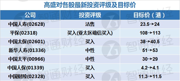 智通财经APP获悉,高盛调整内险H股目标价及评级,并中将新华人寿(01336)评级由“买入”降至“中性”,主要因为近期股价跑赢,公司有必要发表长远策略,以支持股价进一步上升。该行还上调人保(01339)、中国财险(02328)评级至“买入”,主要因为股价跑输,其中财险市价只有2019年市账率1.1倍,再跌空间有限,由于财险占高盛对人保估值的八成。同时上调人保H股评级,重申对平保(02318)及中国太保的“买入”评级,但是给予中国人寿(02628)“沽售”评级(见下表)。