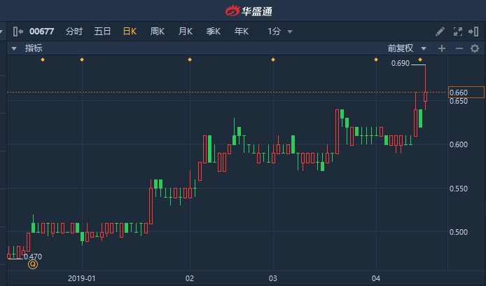 智通财经APP获悉,金源米业(00677)早盘股价逆势扬升,高见0.709港元创历史新高,截至10时34分,涨6.45%,报0.66港元,成交额达884万港元。