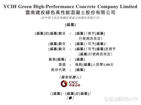 智通财经APP获悉,据港交所披露,4月15日,云南建投绿色高性能混凝土股份有限公司向港交所主板递交上市申请。中金公司为其独家保荐人。