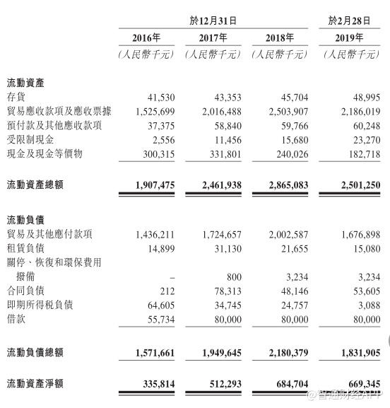 于2016年、2017年及2018年12月31日及2019年2月28日,分别录得流动资产净额人民币335.8百万元、人民币512.3百万元、人民币684.7百万元及人民币669.3百万元。