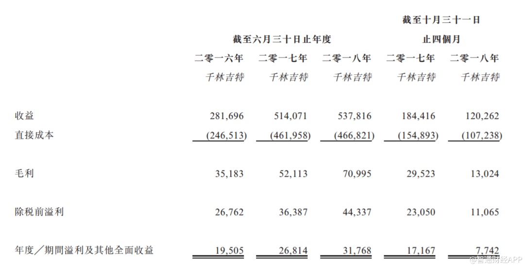 截至2018年6月30日止三个年度各年及截至2018年10月31日止四个月的溢利分别约为1950万林吉特、2680万林吉特、3180万林吉特及800万林吉特。