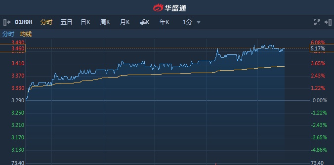 智通财经APP获悉,中煤能源(01898)3月商品煤销量同比增长54.8%至1799万吨,造好股价。截至15时29分,涨5.17%,报价3.46港元,成交额6258万。