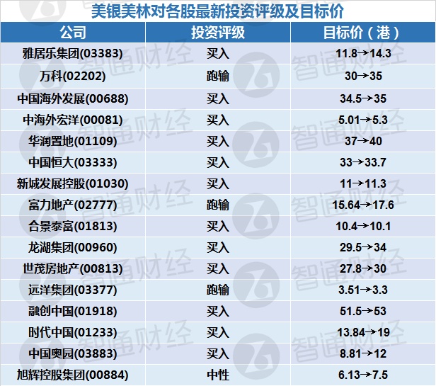 美银美林表示,平均提升内房目标价12%,并提升旭辉控股集团(00884)评级,由“中性”上调至“买入”,因其合约销售增长领先该行预期。另外,因今年盈利可见度低,该行将合景泰富(01813)评级由“买入”下调至“中性”。因市场传出万科(02202)物业管理分支筹划上市,突显其非发展物业业务的价值,该行将其评级由“跑输大市”升至“中性”。