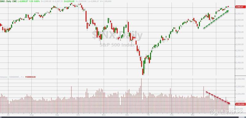 成交量明显(负)偏离了最近这波高点的价格走势。