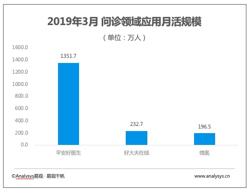 4月15日,中国领先的大数据机构易观发布最新一期(3月)App Top 1000榜单。榜单显示,3月,医疗领域APP用户流量呈整体回暖态势,共有平安好医生、好大夫在线、微医3家APP进入榜单。其中,平安好医生在用户数量、活跃度及市场占有率等核心数据维度均遥遥领先。