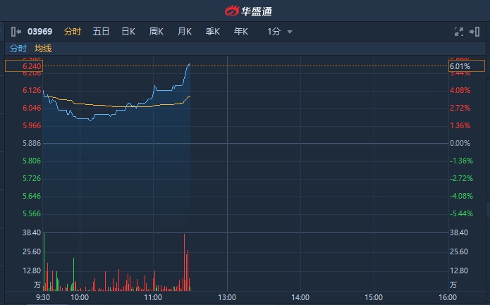 智通财经APP获悉,中国通号(03969)早盘回落后再度拉升,截至11时29分,涨6.01%,报6.24港元,成交额达3294万港元。