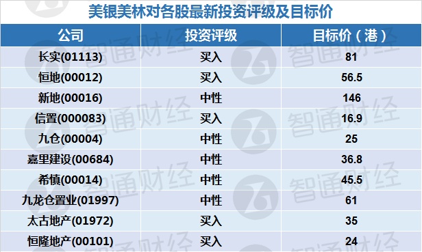 智通财经APP获悉,美银美林发表地产股报告,板块自2018年第四季的低位计,已急弹35%,大部份已超过2016年时的升浪。该行认为大部份股价已反映正面因素,包括暂不加息,低私人土地供应,以及楼市量价齐反弹,因此美银美林偏好公司个别催化剂特质及较平均增长前景为佳的地产股,首选为恒隆地产(00101)、长实(00001)及恒地(00012),当中恒隆地产居首,对该股目标价更提高至24港元,对其他地产股目标价也作出相应调整。此外,该行下调房托股中的冠君(02778)评级至“中性”,但上调目标价。