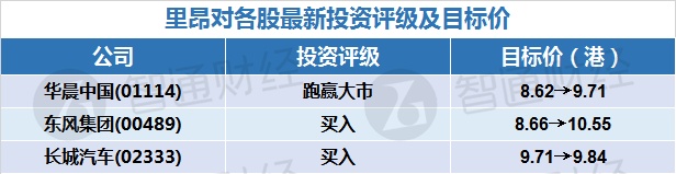 里昂称,对内地今年上半年汽车销量预测按年跌6.2%至1110万辆,预测内地今年下半年汽车销量预测按年跌5.9%至1120万辆。该行指,在汽车股中首选长城汽车(02333),维持“买入”评级,上调对其目标价由9.71港元升至9.84港元。