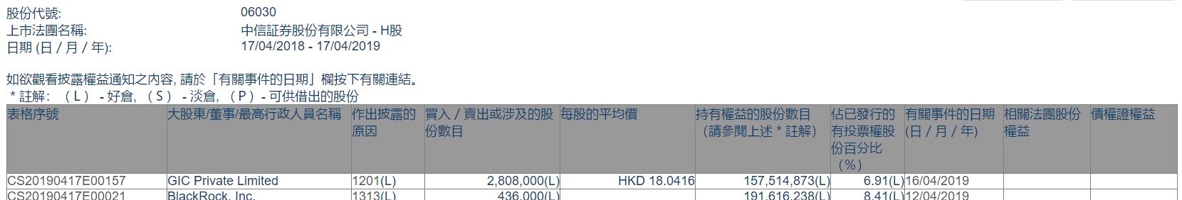 智通财经APP获悉,根据联交所资料显示,GIC Private Ltd于4月16日减持中信证券(06030)280万股,每股作价18.04港元,总值约5051.2万港元,最新持股数目约1.57亿股,最新持股比例为6.91%。