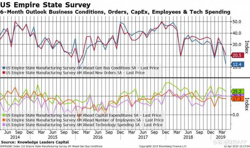 重要的是,这是4月份仅有的几个“软”数据之一,因此它传递的信息很重要。与上月相比,该指数略有上升,显示出一些企稳迹象,并超过预期,但仍远低于2018年的水平。