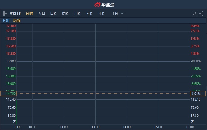 智通财经APP获悉,时代中国控股(01233)早盘大幅低开,截至9时20分,跌8.01%,报14.7港元,成交额达15.87亿港元。