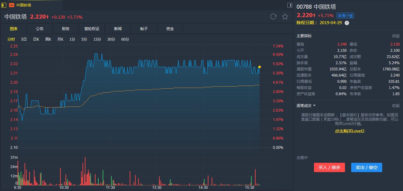智通财经APP获悉,中国铁塔(00788)公布首季业绩后,高盛维持“中性”评级,目标价2.22港元。