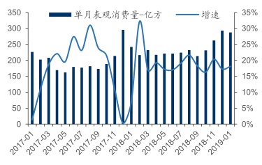 天然气需求还在增长,但增速在下滑。智通财经APP了解到,2019年1月全国表观消费量增速18.1%,前2月全国天然气表观消费量523亿方,同比增长13.4%,继续维持较高水平。结合中石油以及各家城市燃气公司指引,全年天然气消费量有望维持在12-15%区间,较大幅低于2018年18.1%的增速。