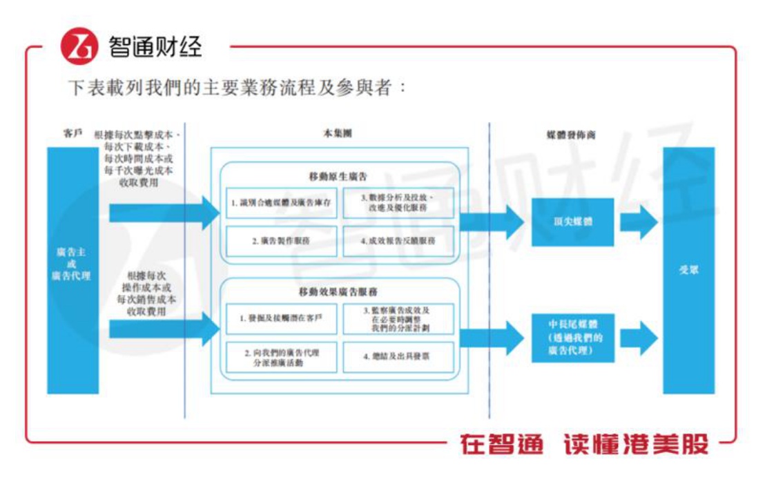 招股书显示,辉煌明天为客户提供两类广告服务,即移动原生广告及移动效果广告服务。公司的移动原生广告涉及投放以与移动用户界面一致的形式展示的广告,公司最常提供的移动原生广告形式包括移动动态消息广告及移动应用程序商店广告。