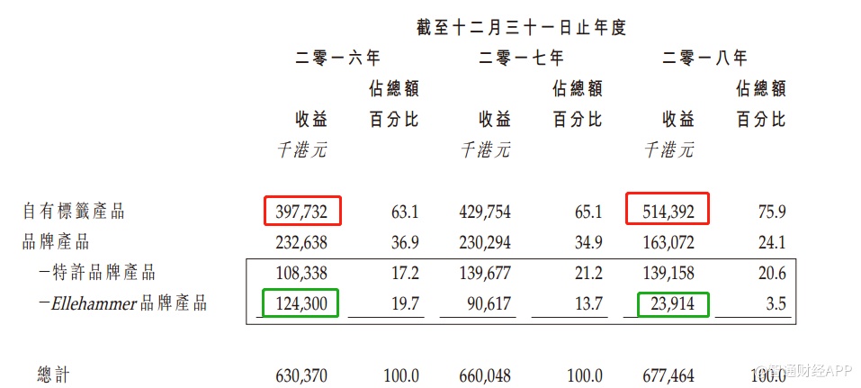智通财经APP发现,植华集团的自有品牌是逐渐走向“衰败”的。从2016至2018年,Ellehammer品牌产品收入连续下滑,2016年时,该产品收入为1.24亿港元,至2018年时,仅有2391.4万港元。这说明,公司的自有品牌已逐渐失去市场竞争力。
