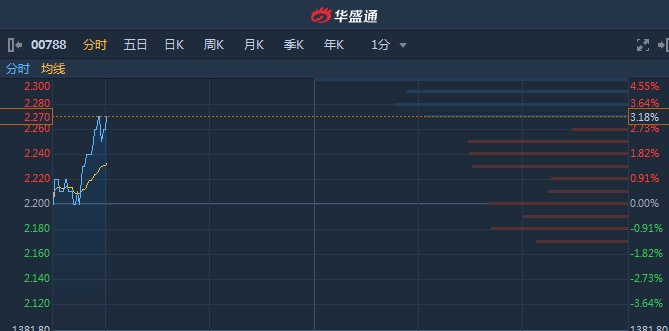 智通财经APP获悉,中国铁塔(00788)首季度业绩超预期,获多家大行唱好。截至10时00分,涨2.73%,报价2.26港元,成交额4.029亿。值得注意的是,该股盘中高见2.28港元,再度刷新历史高位。
