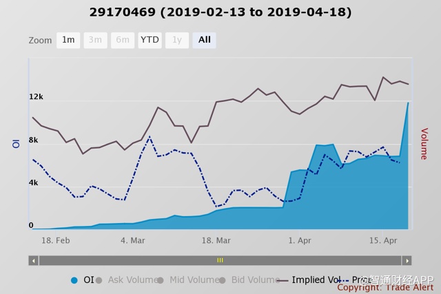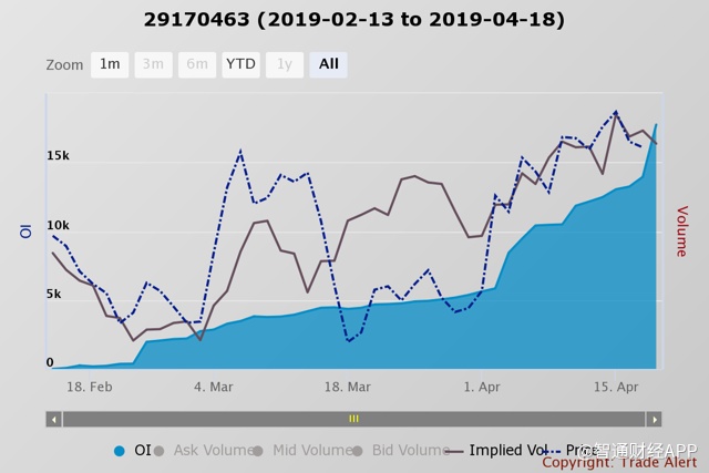 最近几天,以180美元成交的看涨期权数量不断增加。此外,该股还需上涨至约186美元,买家才能实现盈亏平衡,较4月18日约178美元的当前股价上涨约5%。据统计,这些看涨期权的未平仓权益价值高达1060万美元。