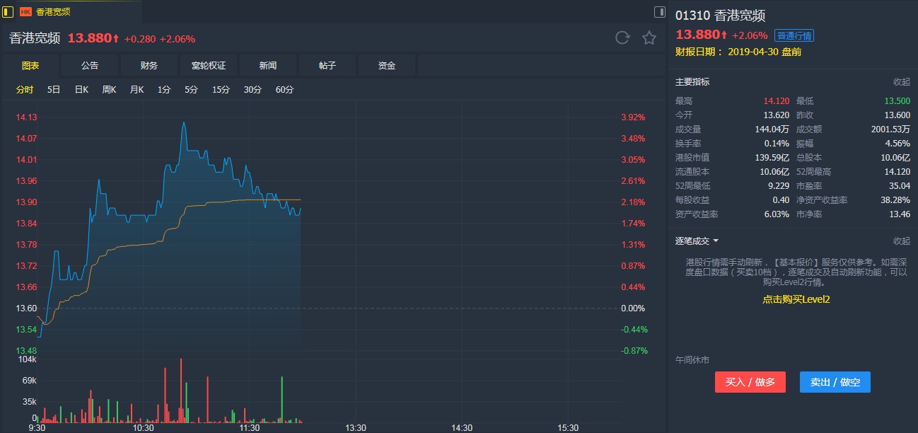 智通财经APP获悉,瑞信发表研究报告,上修香港宽带(01310)2019年每股盈测21.8%,目标价由14.75港元升至16.1港元,评级“跑赢大市”。