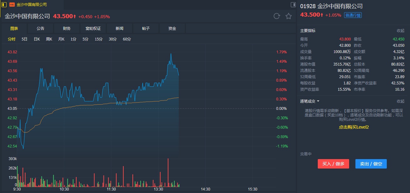 智通财经APP获悉,里昂发表报告,将金沙中国(01928)目标价自43.23港元微升至43.68港元,维持“跑输大市”评级。