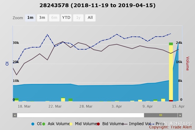 7月19日到期的期权表明,该股从120美元的执行价上涨或下跌9%。也就是说,截止到到期日,该公司股票的交易价格在109美元到131美元之间。看涨期权的数量大大超过看跌期权,其比率接近35:1,其中约有31000个看涨期权合约,而只有900个看跌期权合约。这将表明交易员们在数周后押注该股将大幅上涨。未平仓合约的总价值约为1860万美元,相当可观。