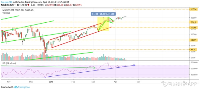 技术图表和期权交易似乎也一致认为微软的股票可能会继续上涨。在智能云业务部门的带领下,该公司近年来实现了健康的收入和盈利增长,并且可能会继续推动其增长其第一季度的业绩。