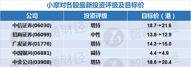 该行首选仍为中信证券(06030)及中金公司(03908),下调中国银河(06881)评级自“中性”降级至“减持”,并将招商证券(06099)评级自“增持”降级至“中性”。