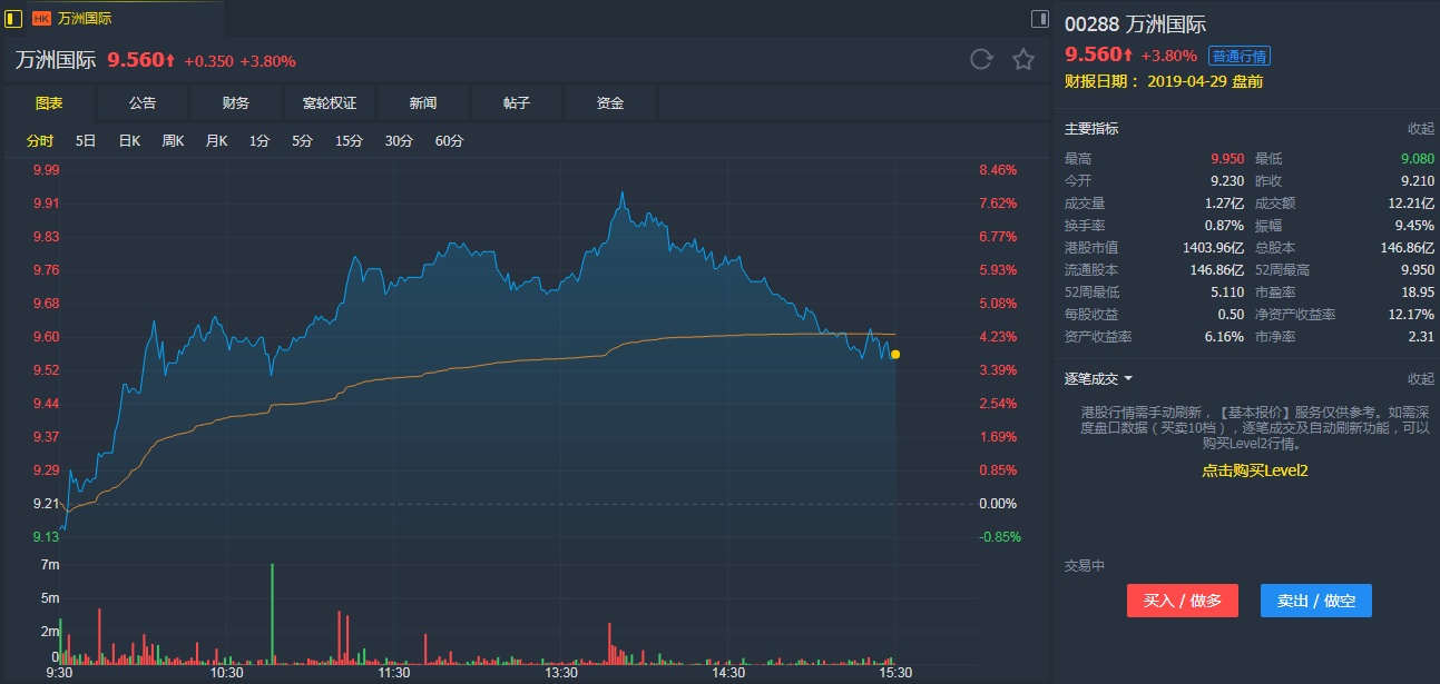该行表示,万洲国际或将受惠于中国猪肉价格的上升周价,再加上公司旗下美国Smithfield的盈利因素,该行决定上调对万洲2019至2021年每股盈利预期4-9%,分别至0.08、0.10及0.1美元,以反映美国业务的表现上升预期。