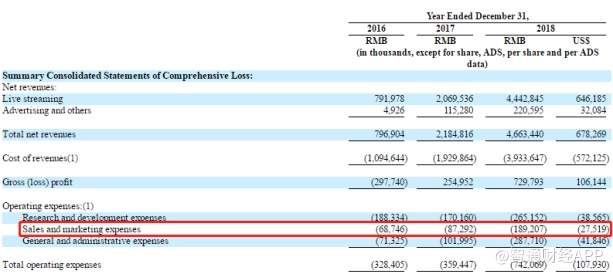 从两家公司同期的市场营销费用来看,斗鱼更像是在“赔本赚吆喝”。通过对比两家公司2018年年度营销费用看到,斗鱼市场营销费用高达5.39亿元,而虎牙仅有1.89亿元。这反映出斗鱼的内容获取成本和用户获取成本较虎牙高太多,这也是导致斗鱼亏损的根本原因之一。